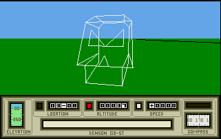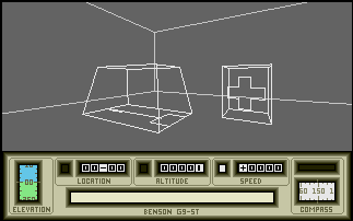 The heavily Battlezone inspired Encounter had been a great success, but had used solid graphics, rather the arcade machine’s trademark vectors. With Mercenary the clear blue sky and lush green ground were now home to a series of crisp vector lines. Plans for this game were far advanced over Battlezone’s simple premise.